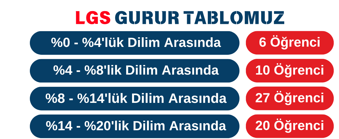 Yukarıda belirtilen yüzdelik dilimler ortaokul kadememize kayıtlı 90 Öğrencimizi kapsamaktadır.
